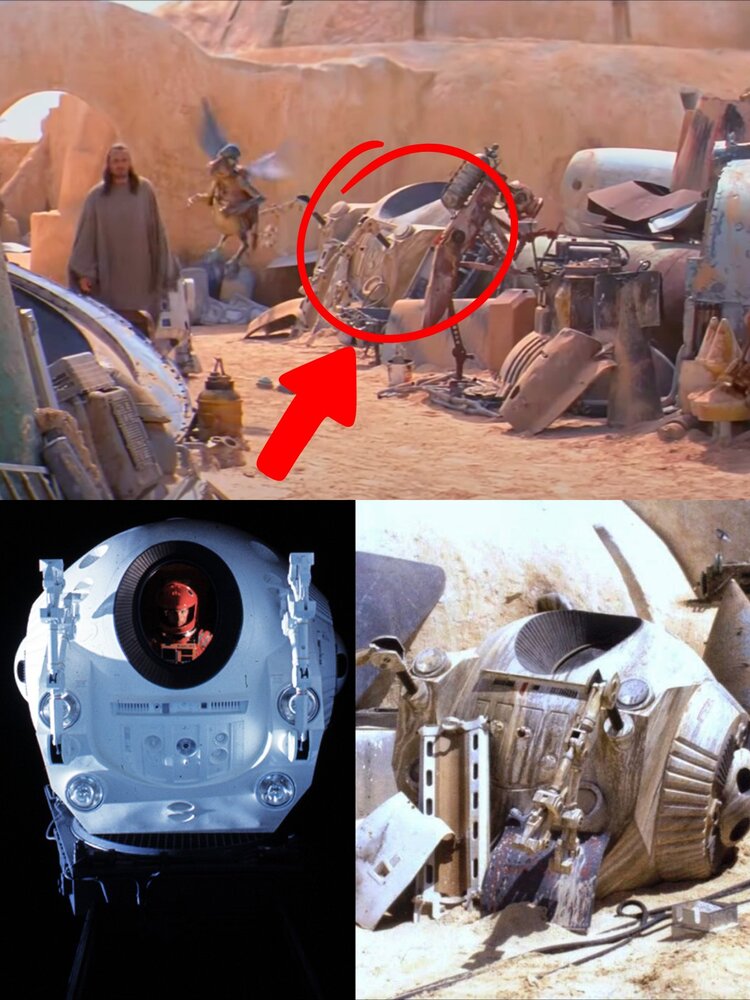 While Lucasfilm never officially stated it on record, this inclusion feels deliberate. Kubrick’s 2001 set the standard for realistic space exploration and inspired generations of filmmakers—including George Lucas himself. Hiding the EVA Pod in Watto’s junkyard is a subtle nod from Lucas to the visionary who paved the way for Star Wars.