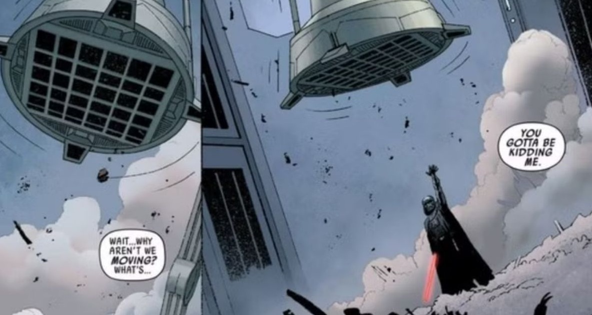 On paper it’s tempting to say “he stopped one ship, so he should stop any ship,” but the way the Force works on screen has never really been that simple. Vader isn’t a walking tractor beam. Even in Kenobi, yanking that shuttle down is treated like a big emotional spike, not something he throws around every time a ship takes off. We do see him pull off similar brute-force moments elsewhere, stopping an AT-AT that Han and Leia try to walk over him with in the Star Wars comics, or catching a falling walker in Rebels and pushing it aside – but in all of those cases the target is right on top of him and all of his focus is on that one object.