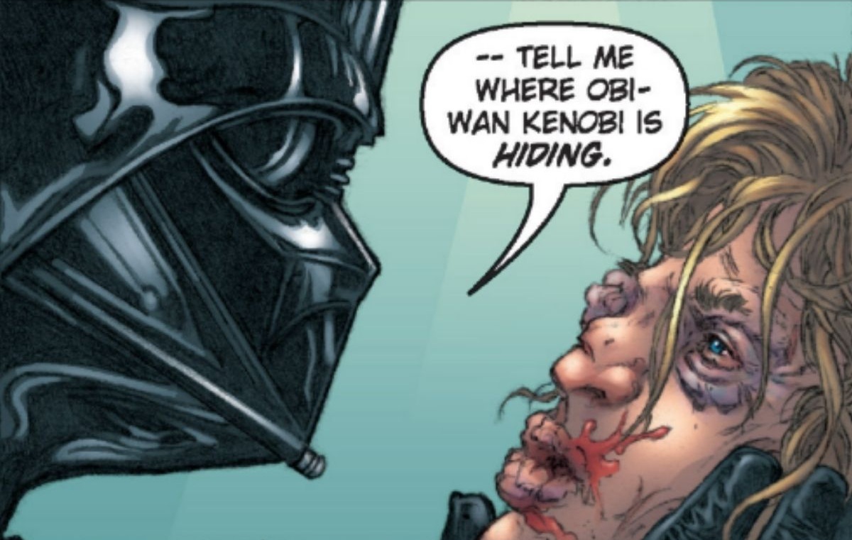Meanwhile, on Coruscant, Darth Vader finishes torturing Jedi Dama Montalvo by killing him after Dama refuses to reveal Obi-Wan Kenobi’s location. At that moment, Darth Sidious arrives and scolds Vader for his lack of patience in the hunt for surviving Jedi, especially his obsession with finding his former master. Soon after, a trooper informs Vader that Imperial spies have uncovered information about the hidden Jedi gathering.