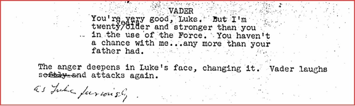 That version didn’t last long. But it confirms that Lucas was still rethinking the story during development—not revisiting a twist he had already planned.