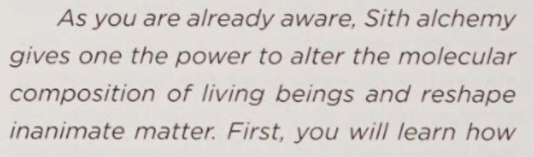 But Legends gives us another angle that fits this kind of outcome: Sith alchemy. If you’ve spent time in Legends, you’ve probably seen it described as dark side techniques that can permanently alter living beings and even bind them to a purpose.