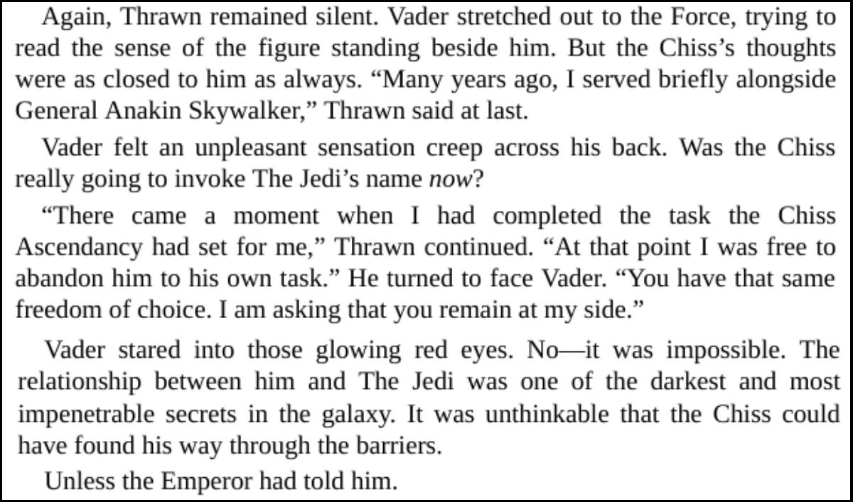 And the more Vader tried to ignore it, the clearer it became that Thrawn knew exactly who he was talking to.