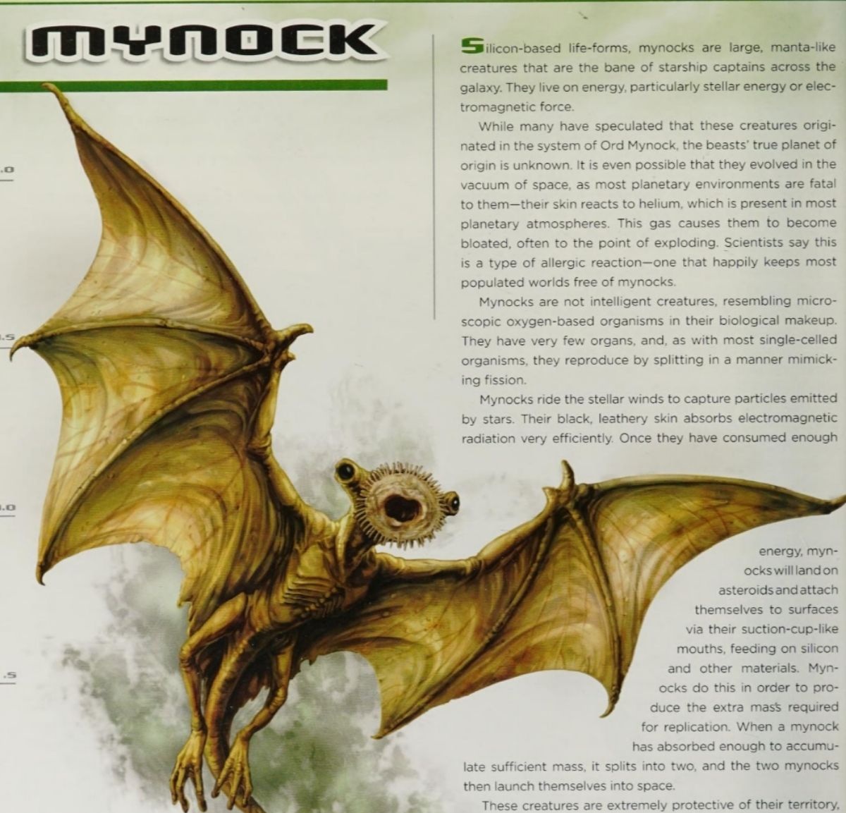 According to The Essential Guide to Alien Species, mynocks reproduce by fission and can survive in the vacuum of space, making them a constant threat in deep-space travel. They’re not hostile in the traditional sense—but they don’t need to be. Their presence alone is enough to cripple a ship if left unchecked.