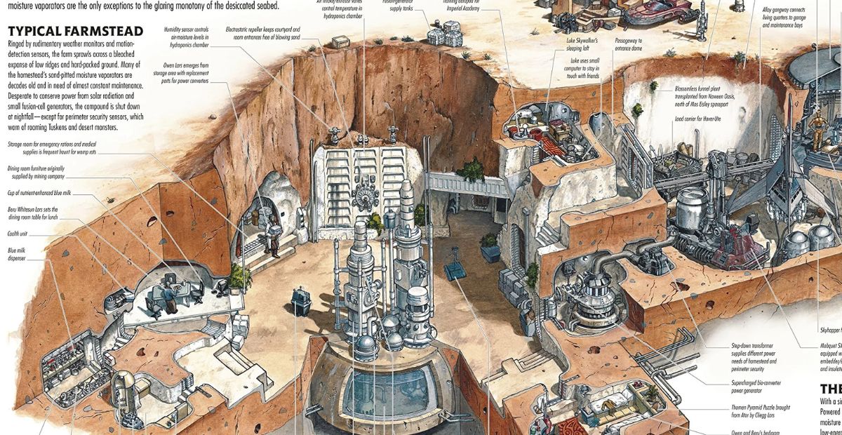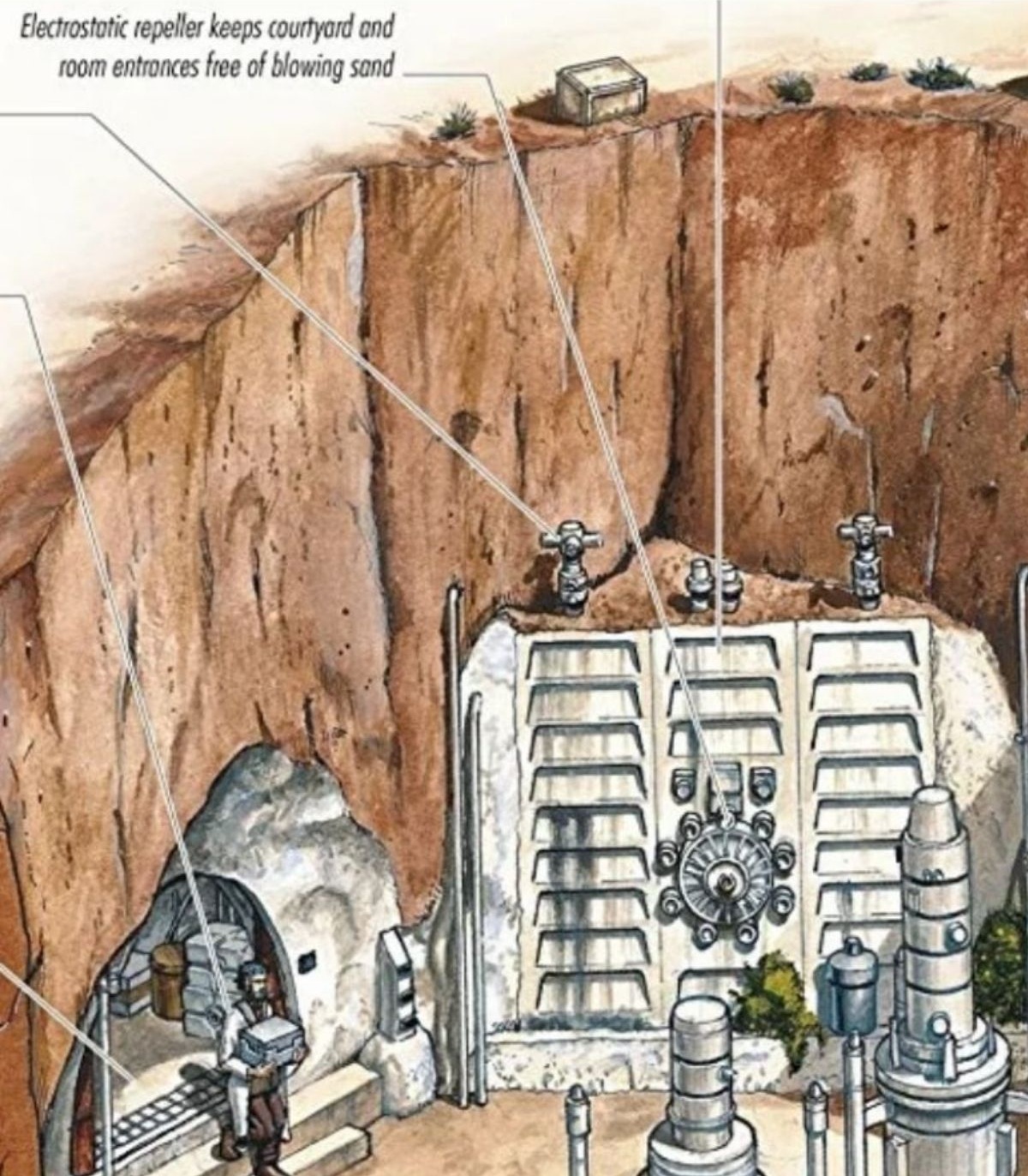 The Lars homestead was not just relying on its underground design. It also used a device specifically built to deal with Tatooine’s constant sandstorms. According to Star Wars cross-section material, the farm was equipped with an electrostatic repeller, sometimes described as a kind of sand trap.