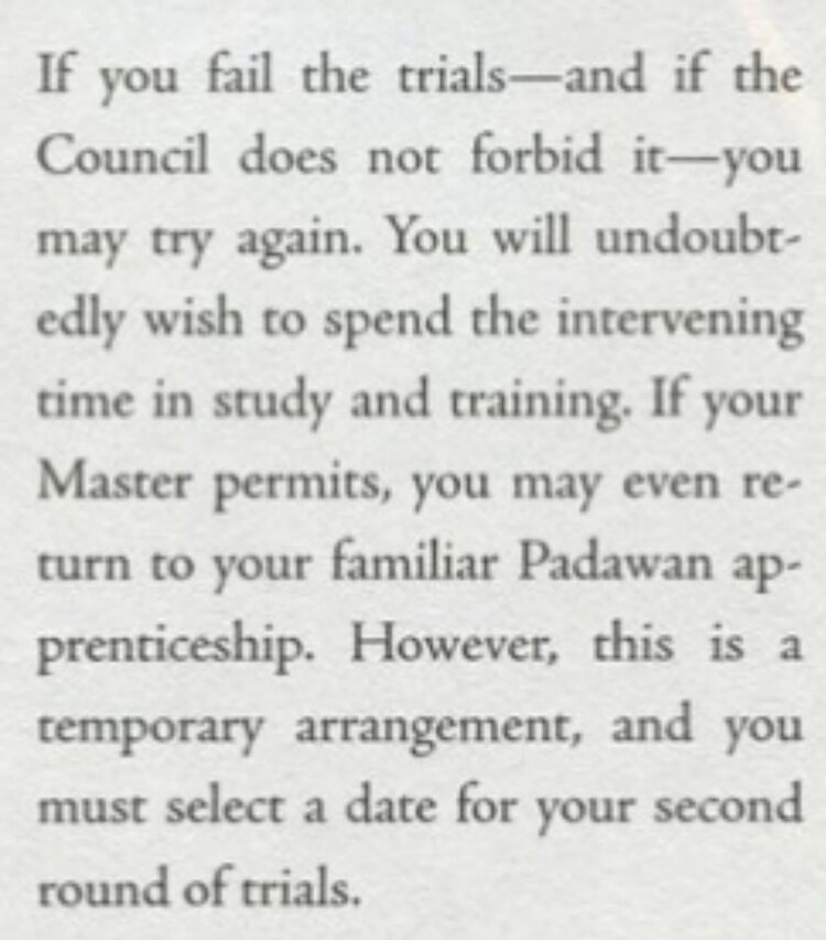 It also notes that if a Padawan doesn’t pass the Trials the first time, they may be allowed to try again.