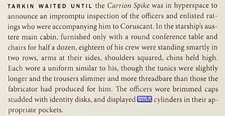I like thinking of them as an officer’s ID, login key, and access card combined. They hold coded identity info, they confirm rank, and they connect officers to secured systems. A code cylinder activates the door, the file, or the terminal only for the person it belongs to, which keeps the Empire’s structure clean and controlled.